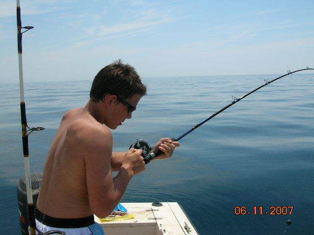 We head out of pensacola pass. At 14 miles its 103 to 106 foot. We used cigar minnows for bait. What we do is chum with pasta and vodoo oil .We fill a 5 gln bucket with cooked pasta the night before. Add 5 cups of vodoo oil. Let it sit over night.In the morning your ready to go.My son likes to put dead Cigs and Pilchards in the mix, but its not really necessary. You take a dip net every 10 min. or so and toss it. The Snapper come right up to the boat. King get in the slick to. Also some Cobia.Yes the porpoise do take the fish off the hooks. My wife lost about a 40lb King do to him in the picture. There not bashfull at all. My son left the grill at the house so we didnt cook any out there. But we have in the past. ;) Heres some more pictures