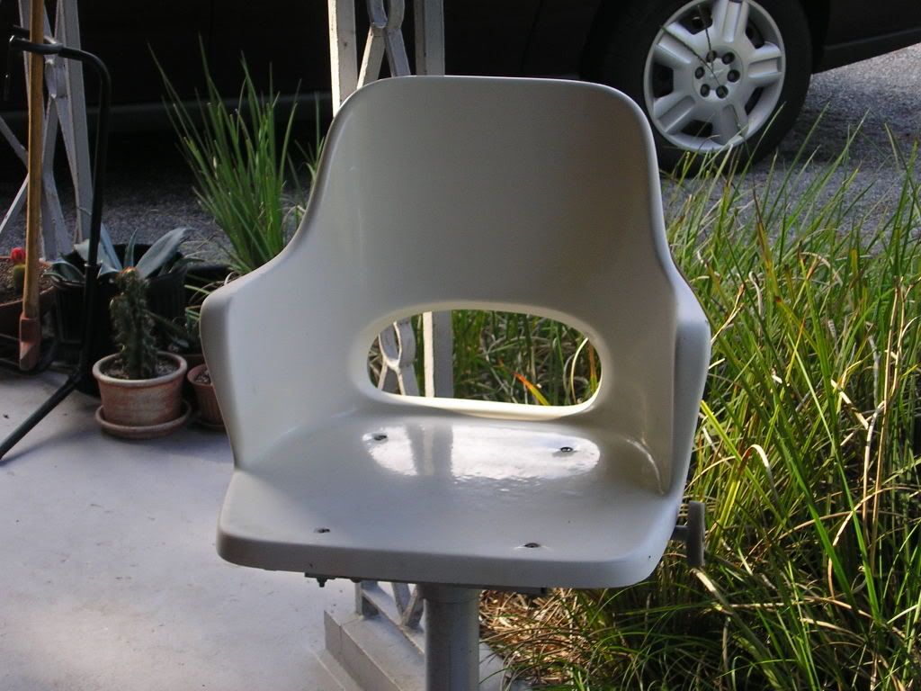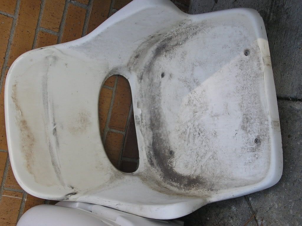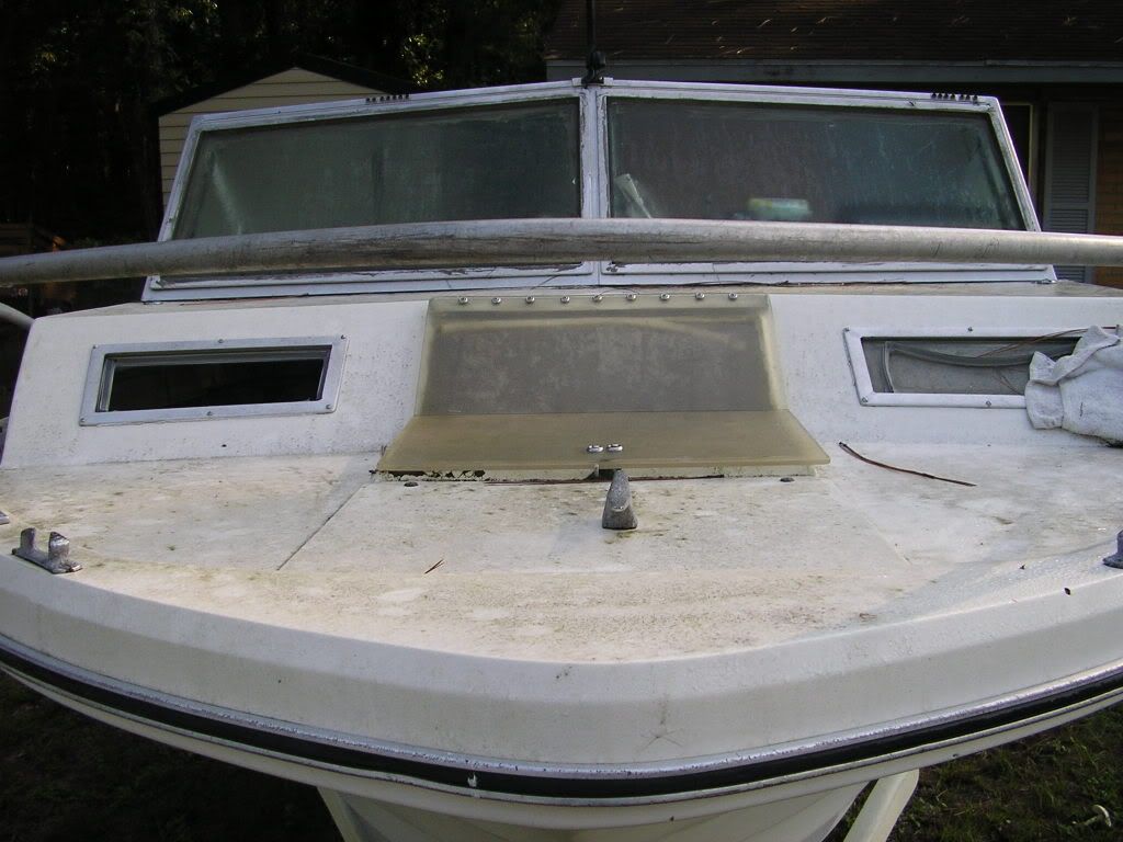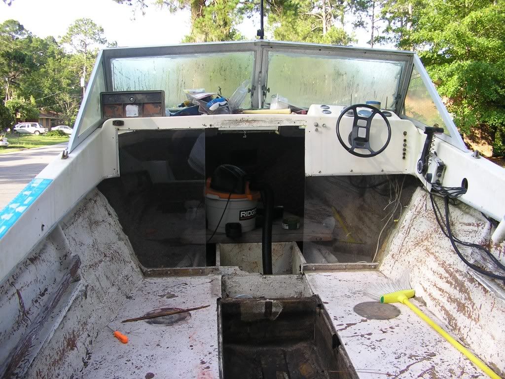 She has her fair share of dents and dings but, I did salvage the original seats  and these are two of my new friends    heres just before I started surgery. That's a cowling that someone built out of 1/4 pluwood and glass cover a 30 gl fuel tank that well I'll show ya  sure the tanks seen better days a new one is on the list but the seats did clean up nicely. Now, anyone got any advise on how to redo the stringers? And I sea a lot of starboard in my future    |