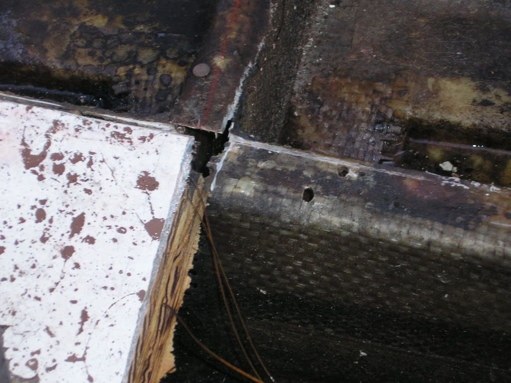 if you look closely in the pics you will see the glass is empty!!! I found sawdust and slithers of wood. The stringers are totally gone. Someone cut through them and ran cabeling at one point and never reglassed them. Either that or they didn't seal the screw holes from replacing the decking. In anycase, new stringers all around and two maybe three bulkheads. I too see a grinder in my future, the force must be strong with this one. the good news is, the transom, solid as a rock, THANK YOU GOD, and the hull is tight. The boat was also stored at an angle so the bow stringers are good. From the console back, it's a different story.
