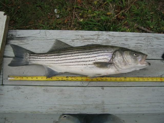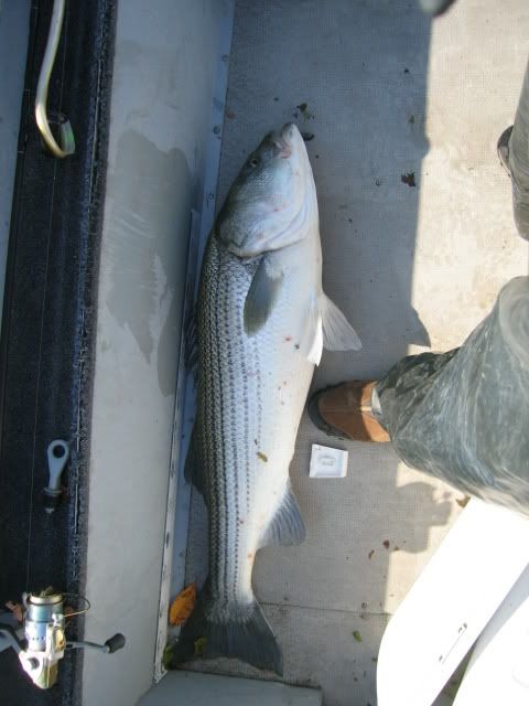 44 INCHER in the boat Next fish, 36" then a 38". One eel left and really wanted a smaller fish for the table...Last fish 28 and half inches!!! Perfect.....Striped Bass for dinner tonight! I took one pic of the biggest (44") fish, same pose as last outing, nothing special just about 2 " bigger than the othe r evening. I caught a 35 lb'er, 43 1/2 " er a year ago yesterday (10/21), so this one was probably mid 30 lbs. too. Have to get a 60LB. Boga Grip! Here's the first and biggest fish; ![]() Here's the little guy gettin ready to be filleted; ![]()