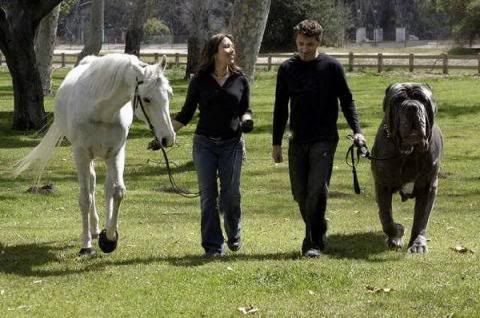 Kinda like these folks walkin' their horse and jumbo dog...