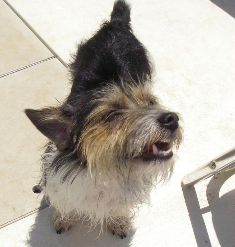 doing what she does best. she's also good at eating and sh!tting. 12 pounds of dynomite. good watchdog. not social with other dogs. i guess around 7 years old or so.