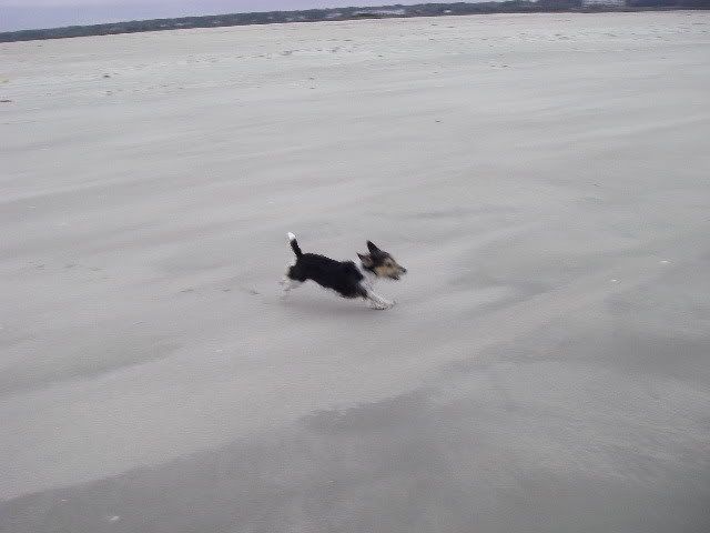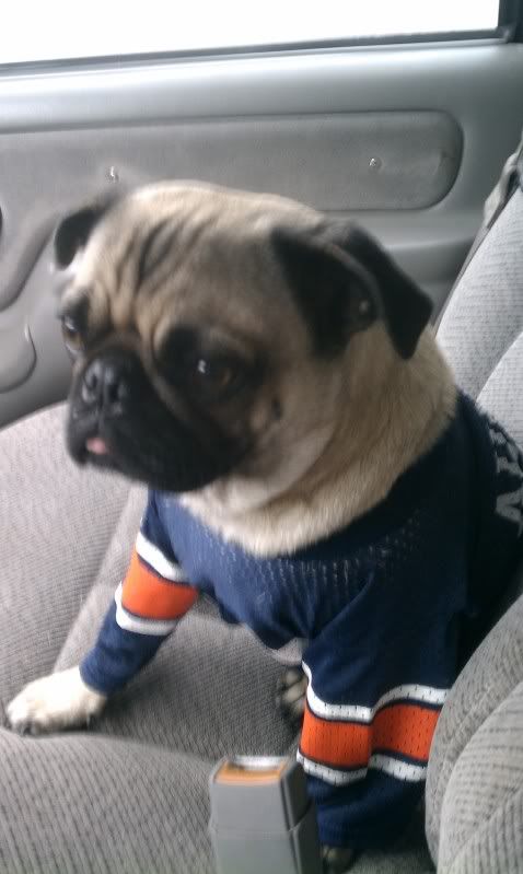 I put him back in the boat, he jumps back in, I'm trying to dig clams so I rigged up a makeshift life preserver. Despite his face he liked it.