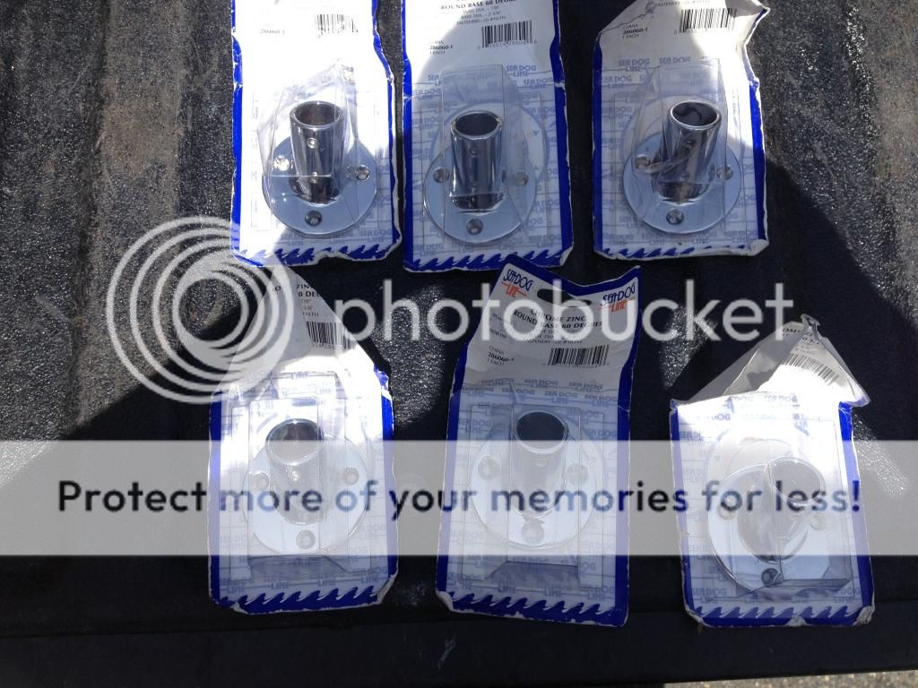 I have some bow rail hardware. I have 6 60 degree round bases and 6 60 degree rail fittings. They are chrome plated zinc. The brand is Sea Dog and they are new in box except a few of the hand rail fittings that fell out of their boxes. I decided to remove the bow rail on my boat so I don't need them. They were $9.99 a piece, I'd like $60 or best offer for them all. I have pics but I can't seem to post them here. I can text or email them to anyone that needs them, thanks.