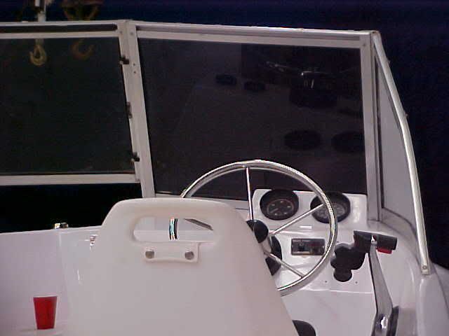 there use to be a bow cover from this boat, but it was rotted and partly missing so it no longer has one lol. the center window was made to open above it and it made the front like a cabin looked alot like the V20 cabin. it was a cool idea. I haven't found the black filler yet, going to a glass company Monday. did you mean the front center hatch it's a hatch i made and cut in the floor for more storageand hull access. it's 13" x 26"