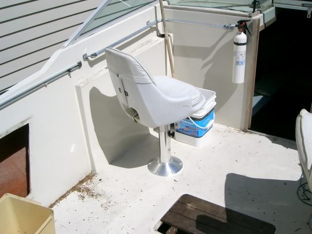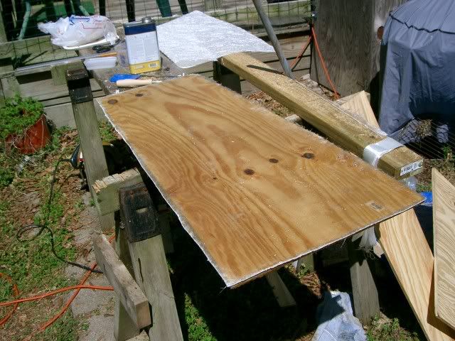 This is the one that came with the boat, still needs to be reapolstered ![]() This is the helm seat from the Renkin ![]() I started the cuddy floor replcement. Fisrt I cut the plywood to size and glassed the back side. ![]() I epoxied it in place ![]() I need to glass it in place and glass the top side then paint it all.
