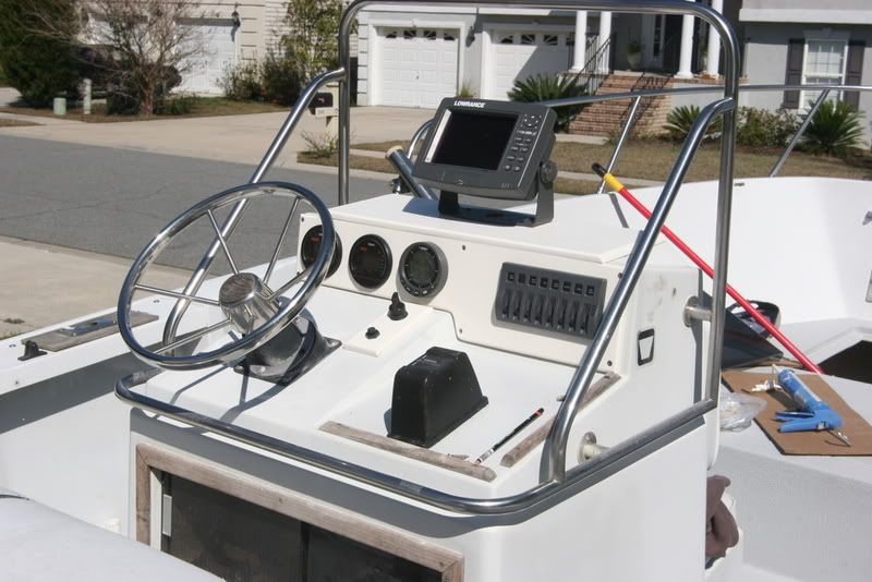 pics.... of the center console in progress. Starboard and Lowrance LCX 28C-HD with LMS 400. I'm shooting for a St. Patrick's Day Launch. I stay away from the Madness downtown and FISH!