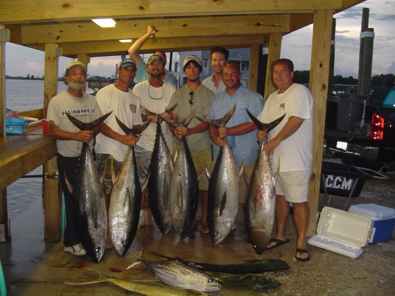 There's a lot of bad things about living in Louisiana, politics, crime, corruption. Then again there's a hell of a lot of Good things too, SAINTS football, inshore fishing and last but not least offshore fishing! Didn't get to use the V but 55 Mi offshore is to far from home fore my old gal.sept 26 trip. Final tally 11 tuna, 6 from 60-70 lbs, 5 20-25lbs, 3 dolphin, 2 bulls in the 30-35 lbs range one 350+ blue marlin we couldn't get to the boat after 1:30min fight that we just kept upping the drag till the 40lb line gave it up.
