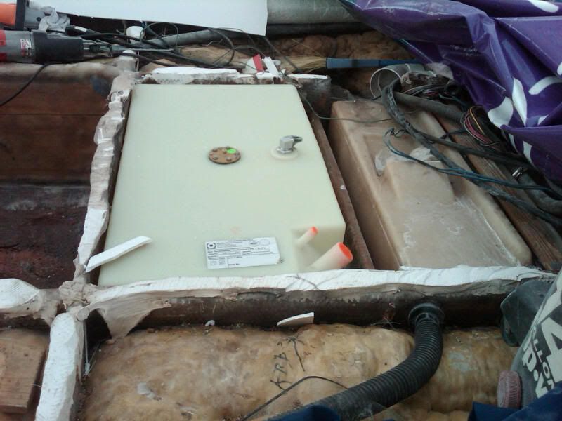 Is the old tank the bigger poly tank and the new 30 is on the right? I never knew they came in poly from the factory...mine is aluminum......is there enough room for expansion? I think you need to expect about a 3-5% expansion of a poly tank...and you need to vent the compartment as well as the tanks actually breath and emit fumes....thats great the way you fit it in......this is gonna be a nice rebuild.