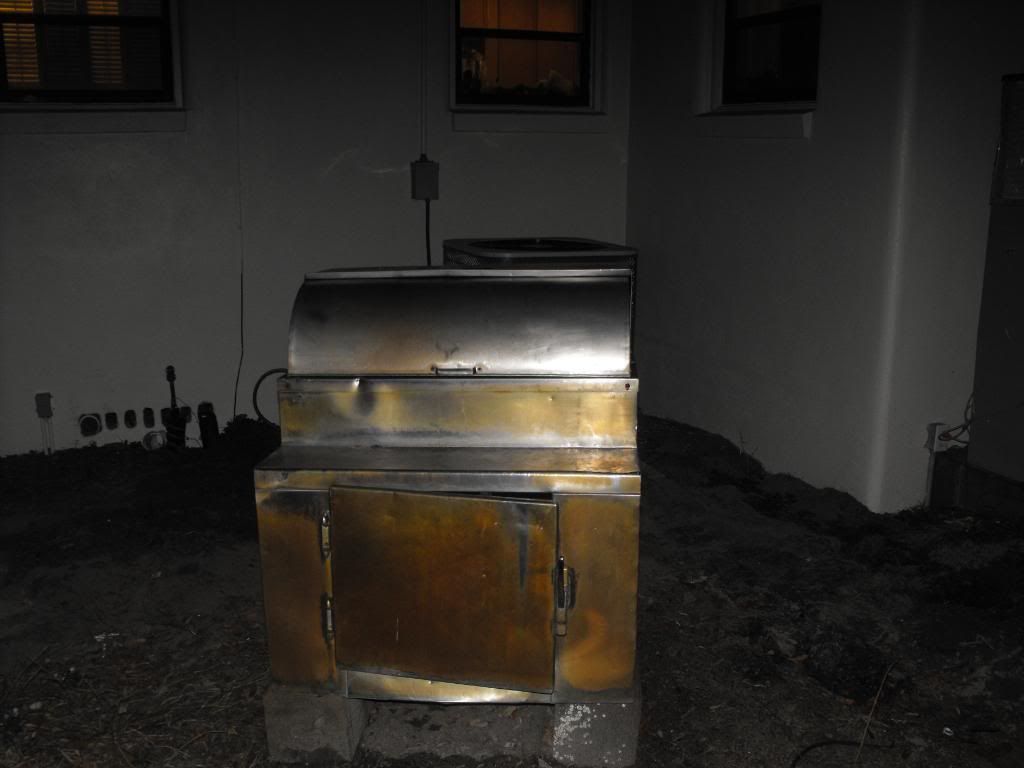Box is made of 1/4 plate. Will be burning same thing I do in my upright drum smoker. Charcoal/wood mix. I got a buddy that runs a power line clearing comany and I got a NICE supply of cherry/hickory and oak built up for smoking. Not to mention a ton more for the fire place. Also my partner that hunts with me built a setup at the camp thats a barrel inside a barrel kinda deal with a tall exhaust and we make our own charcoal. Nothing like making your own and picking what flavor charcoal..oak/hickory/etc..that you want to use on the meat. Then add your wood and its FINE. The stuff we make is way better than anything you can buy. Lights fast and burns a loong time. I do use store bought too though.