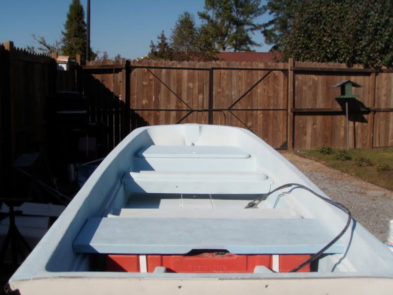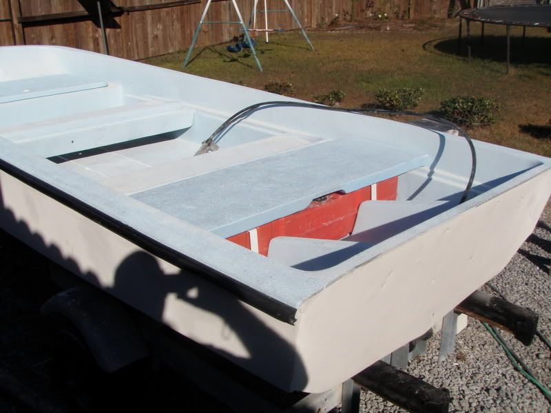 Back to the McKee. First off, McKee has closed its doors, sound like its getting pretty ugly between the owner and the McKee family, too bad, they built a decent boat. theres a thread over on THT if anyone is interested. I was lucky enough to order and receive a new fwd hatch, my hatch was MIA, and any used one found was in pretty bad shape. I took a brand new virgin gel coated hatch, and sanded it down with a 40 grit disc, to prep it for Durabac to match the rest of the boat. Oh, I forgot to mention that I rolled the entire inside of the boat with Duraback. I ran into an issue with the original type rubrail( it cost more than the boat is worth), so I cut the lip at the hull to deck joint off, and glassed the two together so I could use standard type rubrail. I mounted an 18 gallon tank in the rear, built a tank cover that will double as a casting platform, and rounded up an extra seat to make this a four person boat(Me, the Wife, and the girls). My buddy up in Scranton, SC fixed me up with a fresh power head for the 60 Merc, I'm waiting for a fresh water mid before I bolt it all to gether. So here's some pics for ya'll. hull to deck joint(yes i had allready painted it before I went back and glassed the two together, who said it had to go togther in a reasonable order) ![]() ![]() ![]() this is part of the lip I cut off, you can see how wide the lip was, you have to use a special t shaped inner plastic piece with a c section type rubrail to go over it to go back factory. It was going to cost close to $500 to put it back like it was. ![]() after rolling duraback over the repaired area ![]() ![]() new rubrail installed ![]() ![]() fuel tank mounted, used two aluminum yardsticks from Walmart for mounting straps ![]() here it is with the seats sitting in the boat, with the tank cover in place ![]() ![]() thats about it for right now, I'm going to piddle with it a little tomorrow, I've got enough done for this weekend. That little boat has been my escape here lately, I've gotten a lot of frustration out on it, but its coming together. My goal is to have it done by Christmas, then I'm going to get back on the V. Last edited by spareparts; 11-01-2008 at 09:28 PM. |