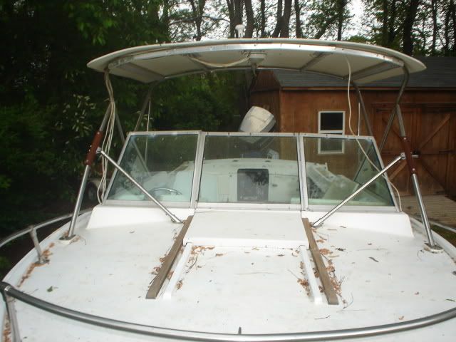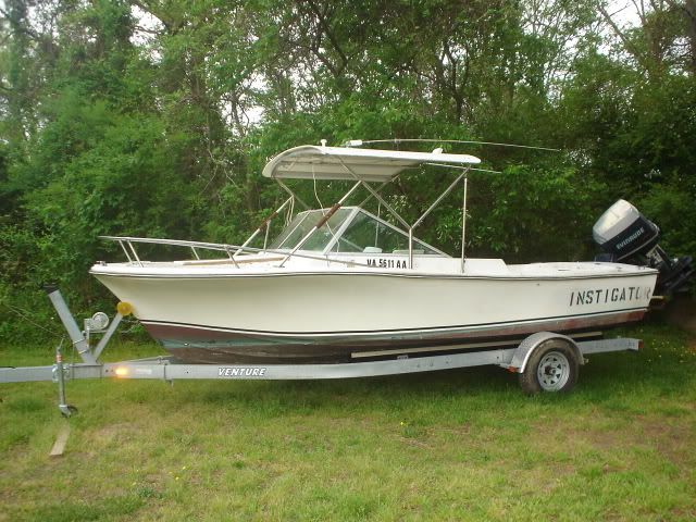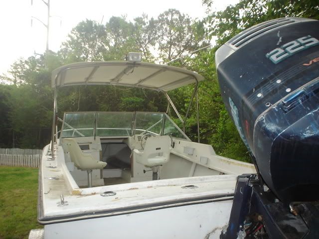 I saw a local add for this boat the other day. 76' cuddy, new trailer, hardtop, 225 Evinrude needs work. I talked to the owner briefly and got him to send me some pics.