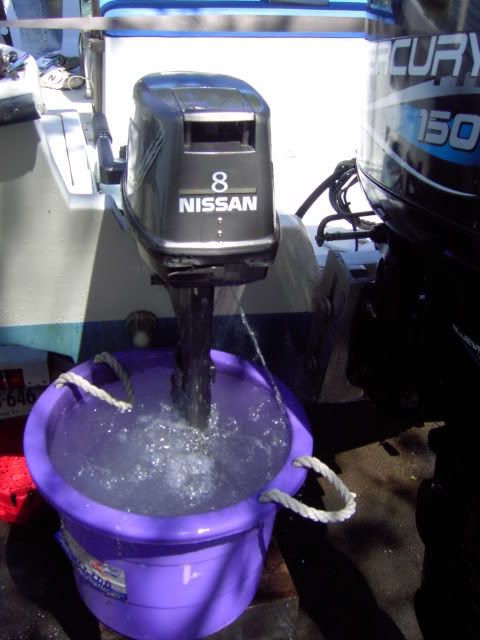 Last thing we had to do was get the Nissan 8HP kicker mounted and plugs changed and ran for a while. According to the manual WOT .9 GPH There is some nice trout that have my name on them I'll get them tomorrow...........