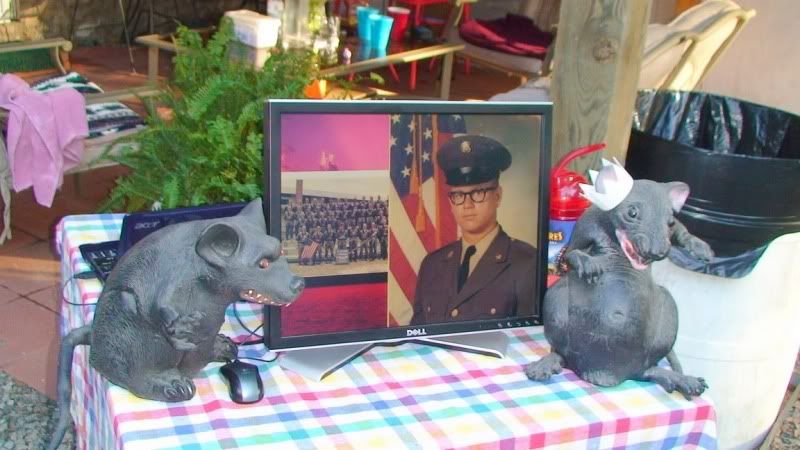 A couple of weeks ago Danny unexpectedly left us due to an undiagnosed heart condition. His wife Vicki had a conversation with him at 6am and 45 minutes later he had expired in his chair at home. Reasonably physically fit, not overweight, etc, 59 years old. Surprise to everyone. Danny was a surveyor by trade and hated the idea of taking up valuable real estate for the purpose to "stick his dead, stinking *** in the ground", his wishes were followed. Vicki only allowed 10 or 12 people to see him prior to the cremation, I'm honored she let Debbie and I to be among them. Friends/neighbors usually are a hard combination to combine, Vicki best describes it, "only a couple of people can get by talking bad about Danny, you being his friend and me being married to him". Seemed always while cleaning up after many of the parties/events we had helped each other put on over the last 20 years or so, sitting back catching our breath we all agreed to not expect a funeral type send off for any of us but to do one just like what we had done the night before. We naturally obliged. Sorry if y'all find it too strange. Facilities for the near 80 guests. ![]() Vicki thought they was perfect. ![]() Debbie & Vicki. ![]() Presetup. ![]() Some of the food. ![]() Couple of night shots after winding down. ![]() ![]() Danny, inducted into the military and present. ![]() ![]() And a pretty good night for a send off!