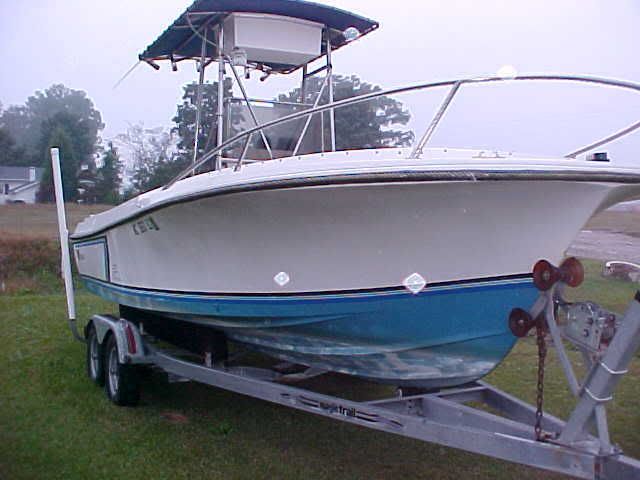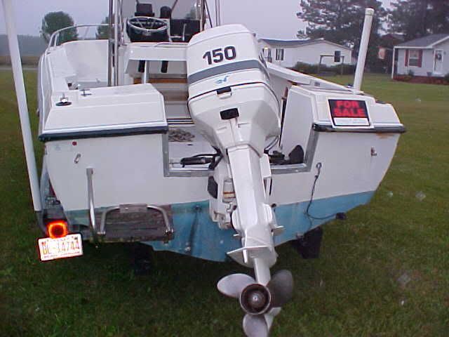 I stopped in the rain today took these pis of the boat tested the transom, floors, and hatches allare solid as a rock. boat looked great. It has a 1998 Johnson 150 w/ SS prop and Hydraulic steering T Top and the boat is a 1988 and has priced at $7250 see pics. Boat is located off Hwy 70 north of Kinston, NC. Just south of Goldsboro, NC. Has great looking tandem trailer.