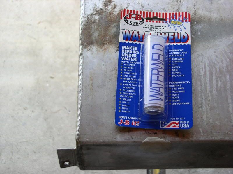 I'm to the point now, all I want to do is throw it in the water and see how it performes. Fixed the leak in the tank by drilling a 5/32" hole and putting this stuff on it.   I do remember useing something like it years ago and had great results. Well at least it will prolong having to buy saddle tanks maybe for this year.