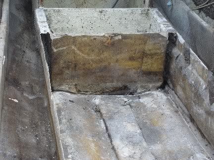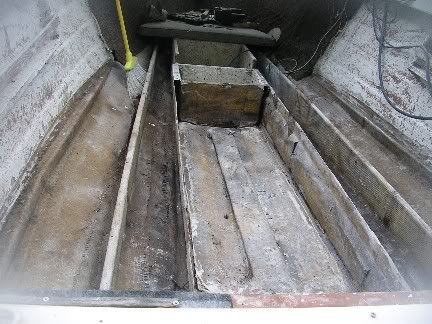 Ok so it's 120+ and I took a sickday from work so what to do! That's right cut out old flooring and stringers. Most of the old glass had no wood but once I started cutting, I found little pieces everywhere. Took a few hours but her's what I got done today. THE PLAYERS  The biggest piece of wood I found in the old stringer cavity  more wood fragments       Even the bulkhead was missing her wood  wanted to use the old floor pieces for a template but, after cutting them out, I noticed a 1/4 gap between the hull and floor so this is trash  cramped and itchy but it will be worth it in the end. I vacuummed for ever to get it this clean. Figure if I clean as I go it won't be as bad. I know still more grinding but it won't be long now. |