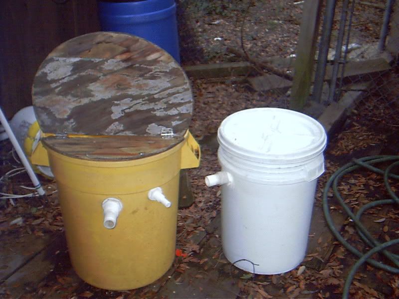 Here's my pump setup...in the bottom of a stand-pipe...water comes up the half-pipe and thru the slot on right, down through a filter(Walmart batting and aquarium charcoal, not shown), pump shoots it through the areator and to the tank ...