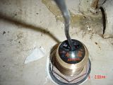 [quote=garagenc]I installed the B60-20 dg angled transducer, pretty easy install (cross my fingers) but if anyone wants to know I had a existing hole for a wash down and I used the existing hole. I made and installed a tapered wooden plug and drilled a pilot hole in it and then used the hole saw. Here are some pics of todays work. *::) 8)  This the existing washdown that I removed and used that existing hole.