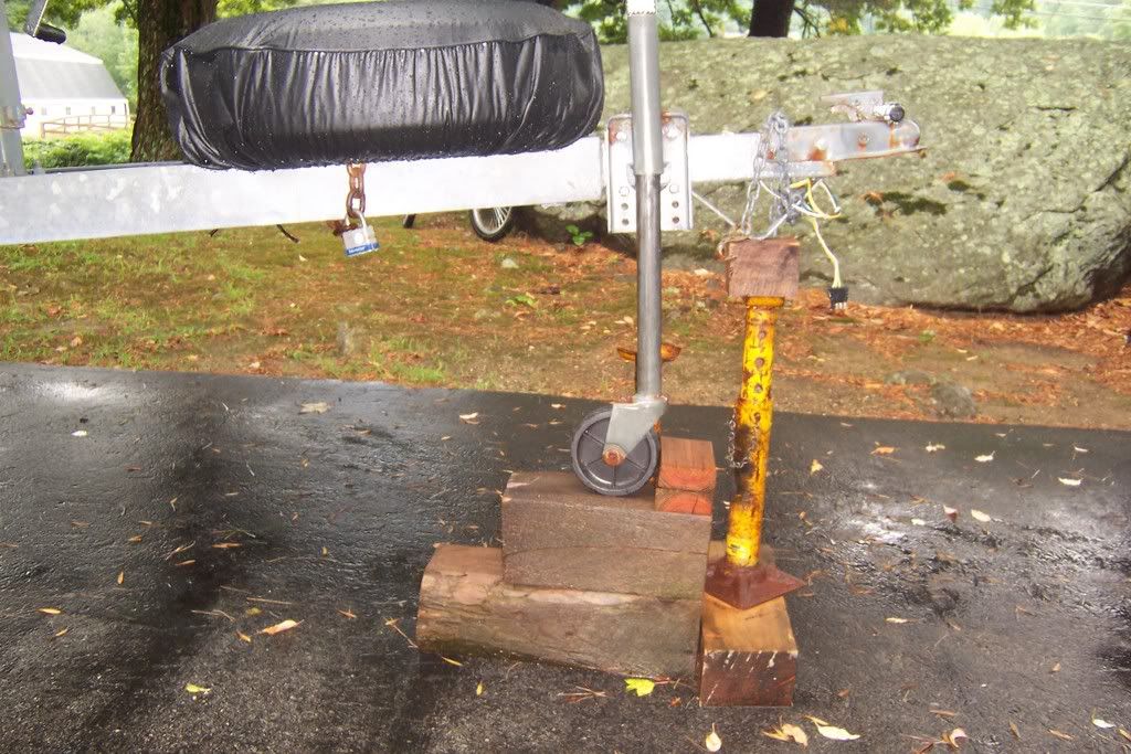 Here is some pics of how I have the trailer tongue up on two 4x4 pieces. Very similar to the way Parishht has his.