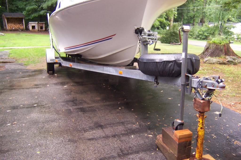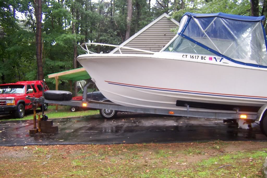 Shawsee, Your set up looks just like mine. My drive is on a slope, so when I back in I need to jack her way up just to get the boat level, then another foot, to drain. ITs apretty scarry site :o