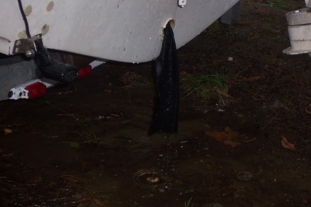 The first time I raised the boat up that high my wife was outside with me. She kept asking me," what the heck are you doing?" I told her trying to get the water out! She then ran like hell into the house yelling,"you are crazy jacking the boat up that high and you are going to hurt yourself. LMAO *::) but man oh man, whenever the boat reached "the point of no return" the water was pouring out of the drain hole! It ran like that for at least 10 minutes too. *:o *The next time I launched her at Point Judith, she was sitting so much higher in the water it was like I had a new boat. I don't know why they designed the boat like that with the drain hole 3" higher then the lowest point in the bottom of the hull. *??? The "wick" idea works great too and who ever thought of that one was brilliant. I couldn't believe that a small strip of cotton material could work so good for wicking water out.