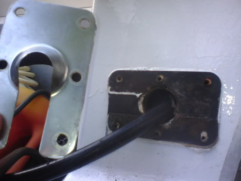 Got the helm unit out, now to the back of the boat. Taking this ss plate off sure did help make room to get this cable out!