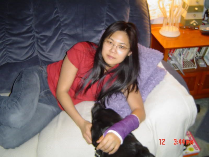 Reel, hasnt posted any pics. yet, so I'll post one. Lisa had new new cast put on today. So its another 4 weeks of me bathing her. :'( :'( :'( :'(