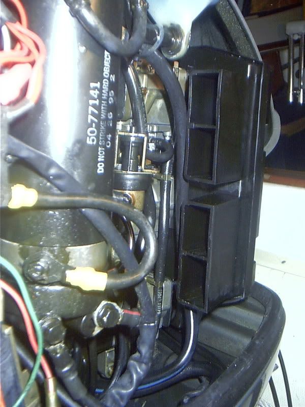 The poppet valve is located underneath the bottom of the powerhead on the intermediate housing. you have to remove the lower cowling pan to access it. |