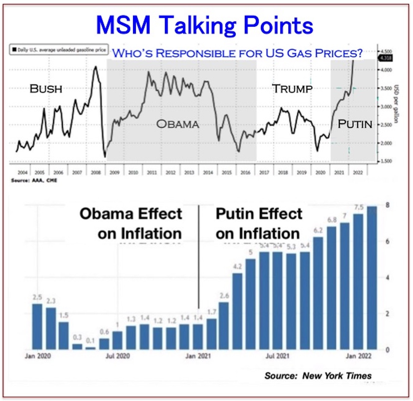 It's funny, but isn't Biden the President? Funny how his name seems to be missing between Trump and Putin. Almost like the NY Times was deliberately ignoring the sharp gas price increases that started the day Biden took office. Lets not forget that Biden was in office for over a year before Putin started his war on Ukraine and during that time the cost of gas and inflation rose every week.