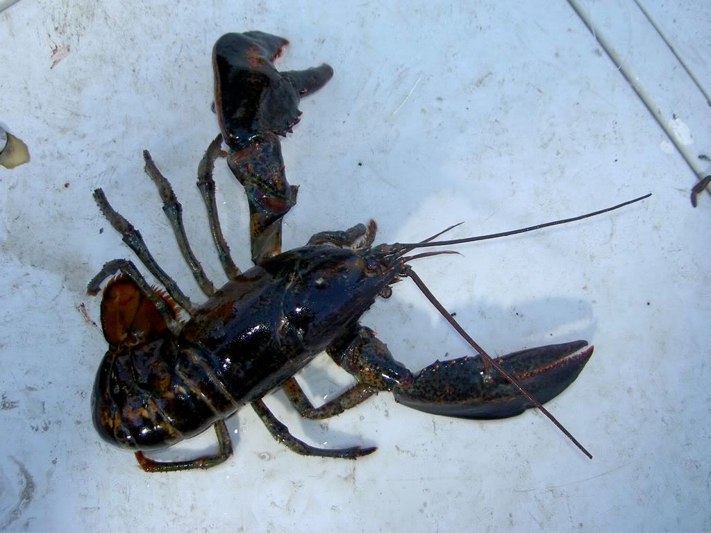 ![]() Blood and guts baby! One of the guys wanted to keep a few and bleeds them out to improve flavor.....Notice the bluefish puke all over the deck.....they were eating peanut bunker like crazy. ![]() Unusual catch of the day was this ~1.5 lb lobster. My hook was actually snagged slightly into her claw. I was going to take it home for my wife but noticed she was full of eggs so she went back in the water. ![]()