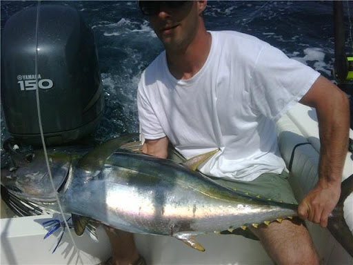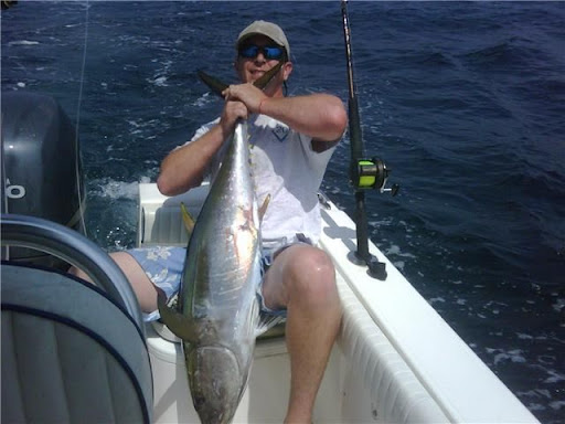 RKC - I have to admit there is no way I could have caught that fish by myself. With Cory driving the boat, G-money rigging/clearing lines, Slick on the gaff, it was truly a team effort so I have no issue with them getting some pix of the YFT. Really it is just as much theirs as it is mine. It was a first for us but hopefully not the last!