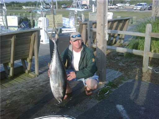 Thursday May 27 Up early on Thursday after staying up late on Wednesday getting tackle and provisions in order. We left out around 8:30 am for the 6 + hour drive to paradise. We arrived on schedule just after 2:30. Team Two Moons got off a little earlier than us and beat us to the cottage by a half hour or so. The weather was looking good so we spent as little time possible unloading in order to board the SS Reel Slick to do some inshore fishing and look for a cobia. Hung a right out of the inlet and toward a cluster of boats working a tideline off of Ocracoke. We put out a couple of #2 planers and clarkspoons in hopes of getting a few spanish or blues while looking for Mr. Cobia. We ended up getting only 2 average spanish and probably a dozen small blues. Saw 2 cobia but the were gone before we knew it and not interested in our offerings, so we made our way back to the cottage to get ready for the next day. Friday May 28 Arose at quarter til 5 am to what appeared to be calm winds. We were at the launch by 5:30 am and promptly greeted by 20 - 30 knot wind gusts as soon as the boats slipped off the trailer. The wind changed and the sound went from gentle 1 ft chop to whitecaps in a period of 5 or 10 minutes. No sooner than we got the boats in, we pulled them back out. Bummer. Back at the cottage, a few crew members decided to get a little shut-eye while waiting to see if the wind would lay, while the rest of us just waited...and waited. Finally at noon the wind laid down and we were off again - this time with both our inshore and offshore tackle, just in case. We made our way to the inlet, which was not flat calm but plenty "do-able" and headed out. We decided on a 150 heading which is basically straight out to Hatteras Canyon, passing by the "Rock Pile" just a few miles to the north. Arrived at the Canyon to 5 charter boats working the temp break in around 700ft with scattered flyers. Not long after the lines were in, I happened to be on the starboard side when the Shimano BeastMaster 20/50 2 speed started to sing. And sing it did. I asked Cory to slow the boat as much as possible to try and slow the beast and get some much needed line back on the reel. The fish finally settled down as I began the slooooooow process of thumbing 200 yds of 40lb high vis back on the reel. At two different points during the fight I had to put the rod back in the rod holder to work the fish...sweat was dripping from my head and I was breathing as if I had just run 5 miles. After several minutes ~ 15 min? - we had color off the stern. What happened next I will never forget. Slick (owner of Reel Slick) was on the gaff as the fish came up off starboard and we realized it was a big yellowfin. I wound the leader all the way to the tip and a split second after I proclaimed, "that's all I got" the rod broke in half! Slick stayed calm, leadered the fish up with one hand, stuck the YFT in the belly with the other and drug it over the rail! I crashed out on the bow, exhausted, but the happiest man in the world! Here I am with my very first big YFT on a small boat: ![]() While I was reeling in the YFT, G-money yelled out saying there was a False Albacore on the port teaser. I bought the teasers (actually daisy chains) and cut the hooks off to run off the cleats as teasers....so I thought. Come to find out I did not cut the hook off one....the one this skip jack tuna decided to hit. Without looking I told Garrett to take the teaser away and see if the "so-called FA" would bite a hook bait. G realized it was hooked and hand lined him into the boat. Me and the skippy: ![]() After all of this we proceeded to put 3 gaffer dolphin in the boat. As we were preparing to leave, all lines were in except the WB, so Corey reeled it in to just between the two teasers until one of us could put it away. I happened to glance over as a sail came up and nailed the bait 10 feet off the stern. He peeled off quite a bit of line and jumped 4 or 5 times before pulling off. After that we headed back to the hill after a very productive 3.5 hours of fishing. G-Money with the big YFT: ![]() Cory with the YFT: ![]() Back at the marina to get the official weight - 43.5 lbs!! ![]() Saturday May 29th On this day we got a late start and decided to head further south than the prior day. There were several boats fishing the area when we arrived. We had a few knockdowns and had fish on at least 3 times but they came unbuttoned. Finally we were able to get a slinger dolphin to the boat, but that was it for Saturday. Sunday May 30th I'm not really sure what happened on Sunday. We ended up running a long way south only to turn and run north back to the canyon, then later to the rock pile. What a slow day. The water was absolutely perfect with a beautiful weedline and plenty of fliers. We only had one knockdown all day and it came on a plug in the propwash - some type of needlefish, gar-looking critter about 3 feet long (no pic). We did see a cobia on the weedline but could not entice him to eat. Total for the trip: 1 - 43 lb YFT 4 - Dolphin from 7 - 12 + lbs 1 - 10 lb skipjack 0 for 1 on sail fish 2 spanish mackerel 1 wierd fish (released) 30 - 40 small bluefish (all released) 3 cobia spotted but none landed I saw a sweet V20 Dually with a tower. It looked like a great place to look for Cobia!!! Anybody we know??? ![]() I don't have dolphin pix yet as my phone is screwed (got wet) and I'm counting on my buddies to send them to me to post. I will update the thread if they send them. It was a great trip with great people...one to remember for sure. I can't wait to do it agian.