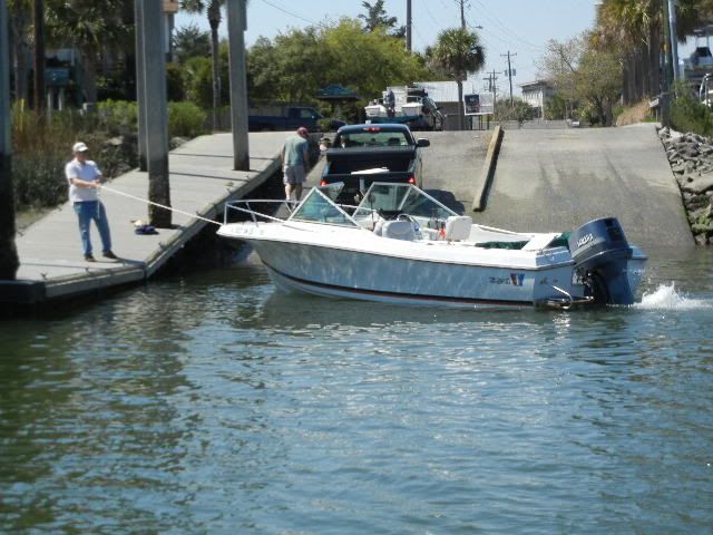 ![]() ![]() Pulling away from the ramp, Rob's V seems to be a tad stern heavy...hmm... ![]() ![]() Taking on a last minute crew member...my oldest daughter, Addie has heard there's boatin' & FISHIN' goin on and she's not about to be left out With the Ravenel(Cooper River to me and many others)Bridge as background, we head out...