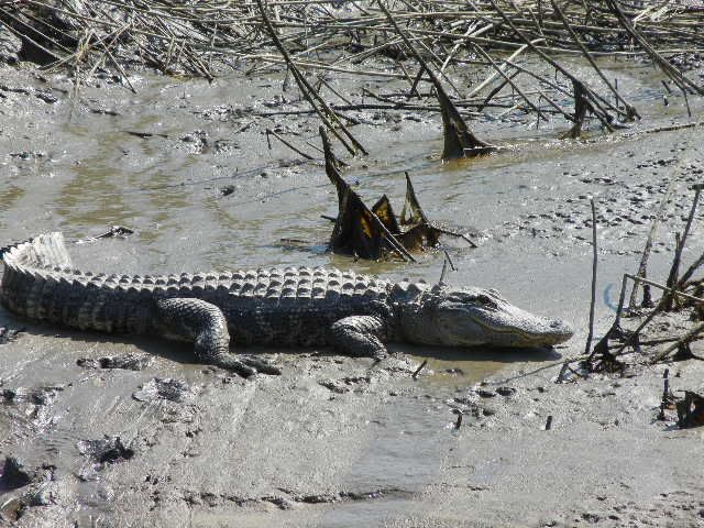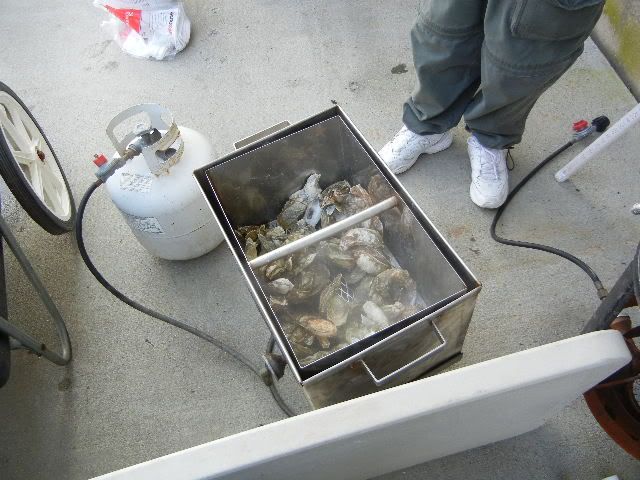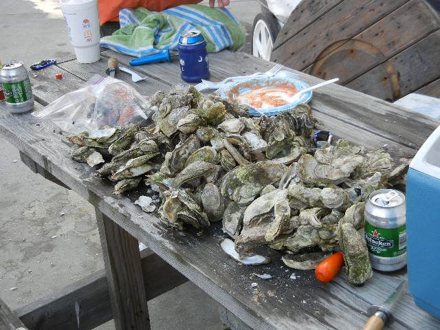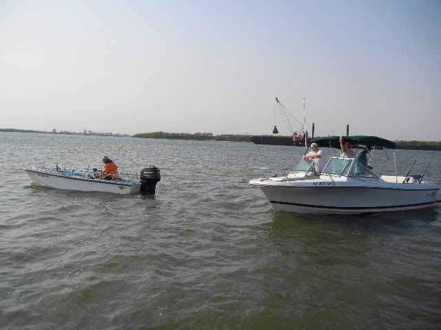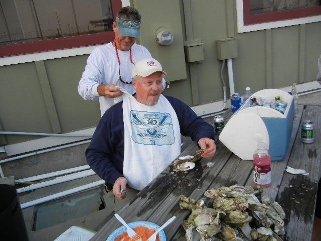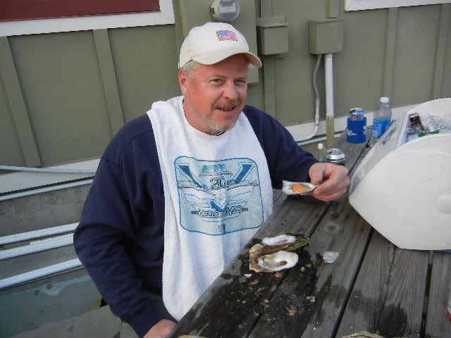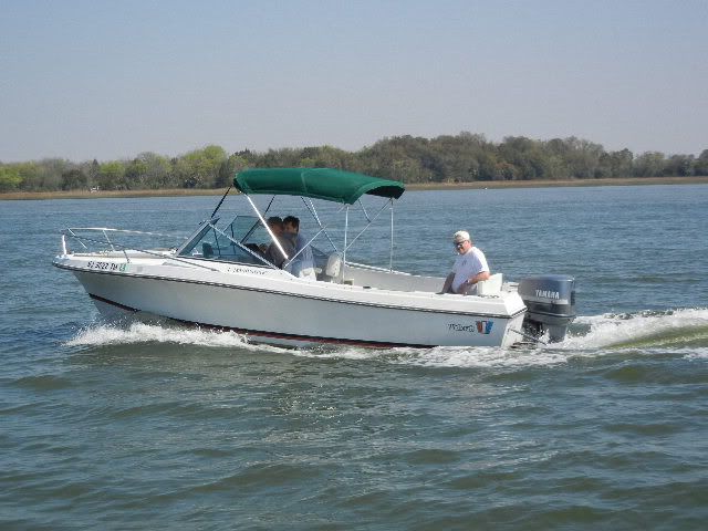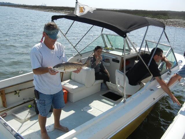 ![]() We line up the 3 boats across the front of the barge...in a little while there's excitement comin' from Capt Pete's V...shortly after Michelle is screamin', so now we're SURE they're catchin' fish over there ![]() One of the causes for excitement...Lee shows off one of about 10 Reds & Black Drums they pulled off that barge...Willy and Rob managed to get one or two and our second trip back to the barge netted a nice Black Drum for me...Vic VERY relieved his boat didn't get skunked on the day...I was feelin a little better as well...those blacks pull pretty good and after the FL trip, I NEEDED a good string-pullin'!! Later on, Vic found this little creek...and Up we went...SKINNY water w/some 8-12' holes we figured to find some FEESH...nope...but Wally Gator greeted us from bankside ![]() We fished about 15' from him for 20 mins or so before he finally slide on into the water...smilin' the whole time... Vic's little daughter, Melissa was a real trooper the whole trip ![]() She never complained rather kept the boat clean both days we were out!!...not a speck of anything hit the deck she didn't take care of right away...we all need one of her on board!!... Nice shot of Rob's V stretched out, planed up and doin' what these boats do best... ![]() On way in there' some chop...nothin' Rob, his trusty crew and a good V-20 can't handle ![]() ![]() ![]() Closer to the ramp, we approach Rob and Vic says there's a boat behind Rob's boat, outta sight...sure enough, David has his great little McKee out in this chop to come find us and let us know the oysters are about ready... ![]() ![]() And off he goes back toward the harbor...he ain't skeered!!... ![]() Back at the harbor, we find a Three Master...don't know the story here, but fun to look at...hey Spare...what goin' on here?... ![]() Here's abetter shot of the Ravenel Bridge... ![]() Named after former Governor Ravenel, whos' son was later busted for an amount of cocaine classified as dealing weight while holding one of the higher state offices(can't recall which)...soon after the news of his bust became public, the white line down the middle of the bridge was immediately named for junior...state politics...gotta love 'em...NOT!!... Meanwhile, back at the marina, Spare has a REEL PURDY mess o' oysters well under control ![]() While Vic proves once again, he's the Hot Dog KING ![]() What I didn't get pics of was Vic whippin' out his MAGMA grill while we were anchored in Breach Inlet and cooked up a TON of dogs and brats for all to eat...and EAT they did...we pulled all the boats up on a little sandbar close enough to hand off the dogs from boat to boat...why no pics?...man I was too busy eatin' brats and dogs, THAT's why...good show, Vic!!...they hit the spot!!... ![]() So as the oysters get ready, the hungry snaggers gather round the table... ![]() Did I say OYSTERS??... ![]() Lee had told me to have the camera ready and what he was up to...so in mid-shuck, he springs his surprise on Willy!!...and none too soon!!...oyster juice was flyin' as Willy shucked thru the tasty crustaceans like he was in cruise control ![]() ![]() Finally the group shots... ![]() ![]() And w/those final clicks of the shutters, Spare's 1st Annual Charleston V-20 Get Together comes to an official close...although a relatively small crowd, I proclaim it a rousing success!!... ![]() All who showed up had a large time...some, their 1st visit to Charleston and SC I think will agree it was definately worth the trip...we ate good from FINZ to Reds to Sea Breeze Marina where David served up the best oysters I ever had...we'll see ya'll next year for sure...who knows...some of these guys might be permanent SC residents by then...only the future can tell...