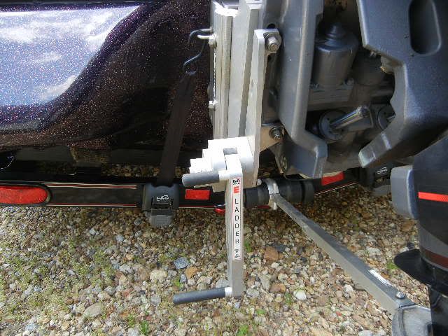 Went Bass Fishin' w/a good buddy of mine Mon...he's got an interesting little ladder that is permanently attached via the two port-side engine mount bolts...has a pull-out pin for easy up or down of the two step ladder...thought this may interest some here who don't want swim-platform, but see the need to get back into the boat from time to time...
