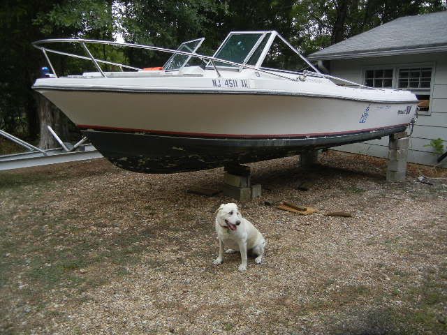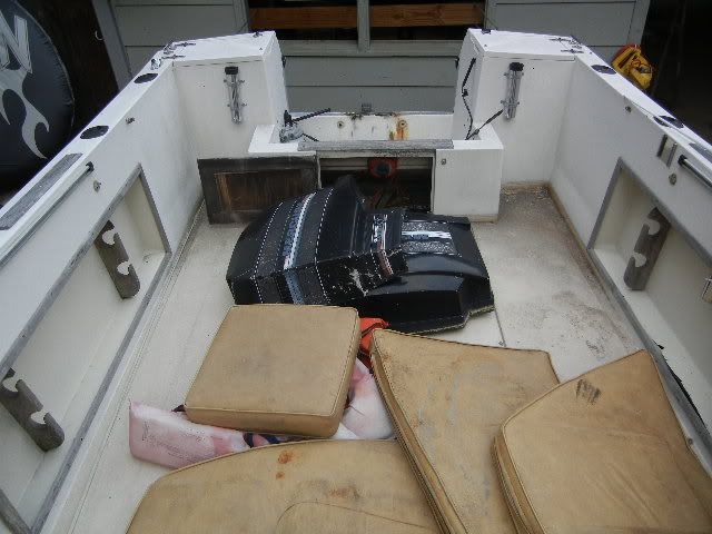 Actually Capt Pete made me an offer on this '84 I couldn't refuse...and I can't thank him enough for hookin me up...made the offer back in the Spring when he and Michelle came down for the Charleston Get Together and we've been in touch about it from time to time since...transom seems solid, floor decks, bow deck, too...only softy is the gas tank hatch, so like Willy said, this will be a good 1st fiberglass project...