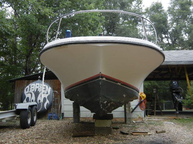 Nice find Reel. (Thanks for helping him out Pete) Great looking project... hope it all works out. I gotta laugh at the number of people that have extra engines lying around (including my 200 Merc also). Just do me one favor.. PLEASE..support that thing better than it is in the back. Yes, it's the little old worry wart popping his head up again, but one good nudge from a car backing up and that boat is on the ground...hopefully with no one under it. Get some cross timbers under the stern. I want to talk with you, not about you.