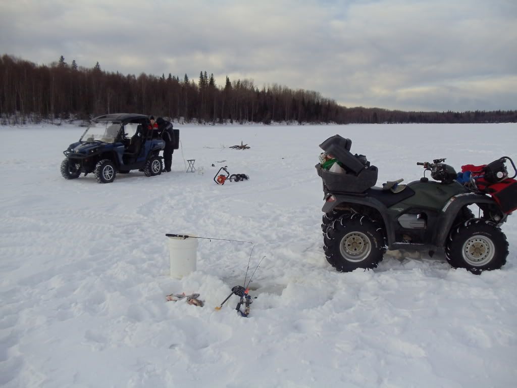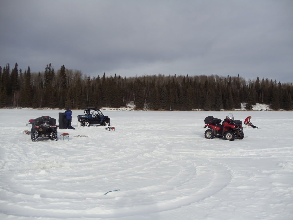 Was out the other day with 3 of the boys to give em another lesson on who is on top of the food chain. We went out looking for a feed of tasty yellow perch. Good thing they took me we can only have ten each I put 35 on the ice and keep 20 in the pile on the ice. If you look close I drive the green quad and the pile of fish is beside it. Told them they had to at least catch half the days catch   . #7 Len Thompson five of diamonds= fish fry in these parts    Welcom home!  Beer time