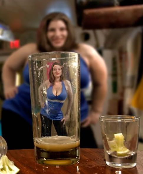 Here she is, the farmer's daughter at closing time in his local watering hole.