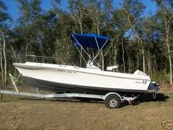Hey Boys, I'm toying with the idea of buying this 84 CC. If I buy it, I will be putting my 86 dual console up for sale. So, this is a bit of a heads up just in case anybody might be interested in my dually (full transom ready for bracket ;D). However, before I make this decision, I have a number of questions that I hope you guys will help me out with. First of all, here are the pics of the boat.      Okay, first of all, does the trailer look a bit odd to you in the front? Second, do any of you know whether or not the transom can take an engine with a 25" shaft? Would I have to get one of those jack plates? Can that transom handle the weight and power of a 93 200HP Suzuki? (The engine currently on the boat is blown) The reason I'm even thinking about doing this is because I wanted a CC all along and because I would be able to put one of my Suzuki's to use on it and maybe keep the other member of the pair for backup. Do any of you know of any reputable, yet reasonable boat transporters? What's the average price per mile? I don't think I'm willing to do another FL trip so soon after having done so for the dually. I'm sure I'll have more questions along the way. Let me thank you ahead of time for any help you might be able to offer.