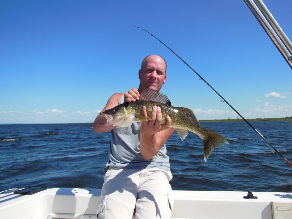 First time this year the V seen water and she played HARD in it. The trim Tab's were incredable and the fishing was the same. My boy got a lesson from Dad this time Lol my walleye hole produced some big ones for us. I was drifting bottom bouncers in the wind or trolling them  on the zig-zag across a 8'-23' ledge that runs for 5 or 6 miles allong the north shore.  For the V-20 vs V-21 Guy's here it is the V-21 all weather Pee Deck  Fishing the ridge  Wobblie's Biggest Walleye to date ( a little V magic!! )  Dinner  Out for the evening fish