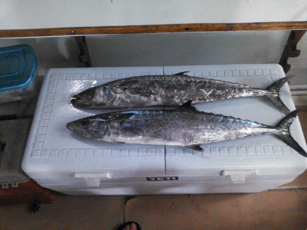 had a light day at work, managed to get off after lunch.  wife & daughter are off for the summer, so we loaded up and went about 1:30.  got back at the ramp by 5 and brought these guys back.  not real big ones, 30", but they'll make nice smoked fish dip.  yea, i know putting a yeti sticker on a cooler doesn't make it one, but i can pretend... |