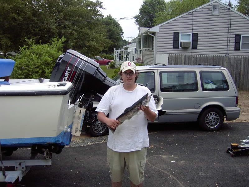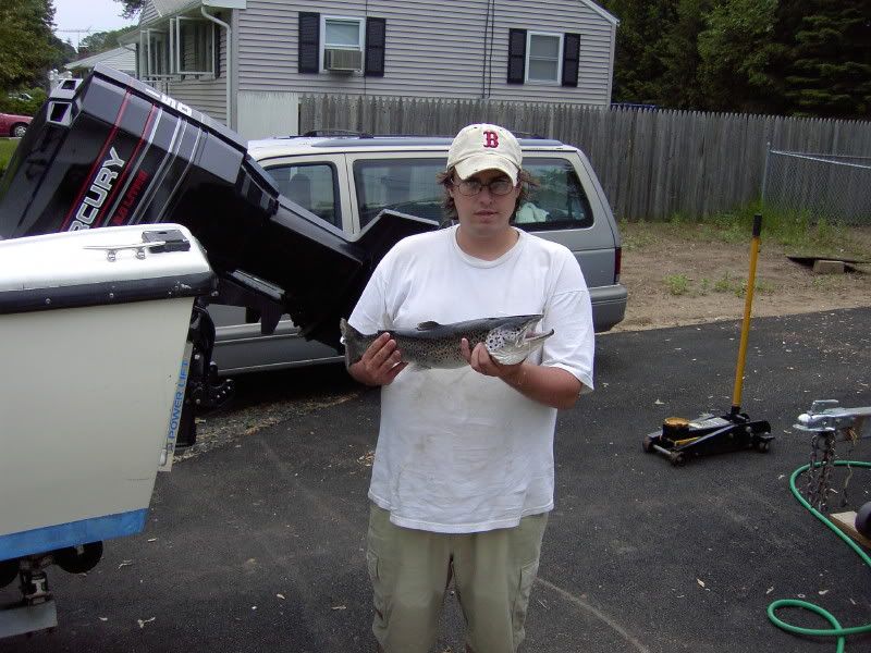Got tried of waitng for the Connecticut River to go down so I can get the boat in the river for stripers so today I took it to Crystal Lake in Ellington Ct it's a small but excellent trout lake it's one 1 of 5 that is a trophy trout lakes in the state and it's less than 15 minutes from here I used to troll there a lot but I have no kicker so we drifted with shiners in 3 hours we caught 11 trout the largest was 3 1/2 lbs and 22 1/2 inches long that my son caught. Next week Blackfish opens so....Down to the shore...Ted * * *