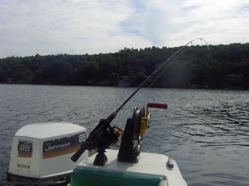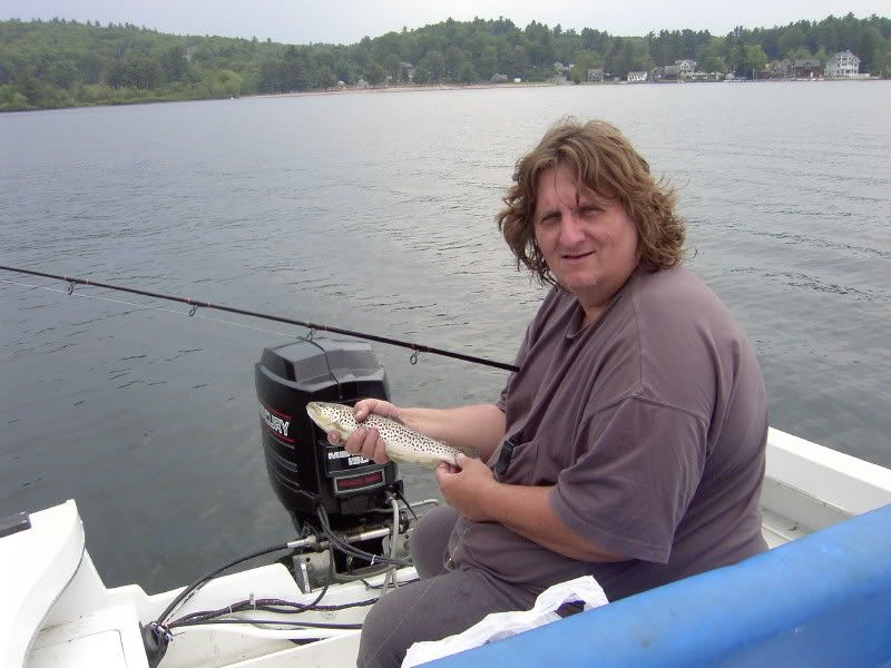 I'll anwser the first question It's a male rainbow trout and the smaller one is female brown trout the males as they mature the jaws get long and curl simular to a salmon. Here in Ct there 5 trophy trout lakes all have a 2 trout limit that has a 16" min size all other must be released. This place is only 200 acres but around 1900 this was a stone quarry that they struck so much water that the place filled up to a depth of 55 feet and along the south side with a depthfinder there is the last place that was worked there is a vertical wall that goes from 53' to 13' in less than 10 '. When I had a 17' foot Starcraft Tri-hull we trolled there everyweek at least 3 times a week and pulled up some real nice trout up to 7 pounds... july 2003 trolling 25' down with a silver spoon I caught a 6.1 lbs largemouth bass....It's a nice plce to fish and swim... I found a few pictures fishing from the old Tri-hull 1976 Starcraft Capri with a 1974 Johnson 85hp we fished everywhere with it ....