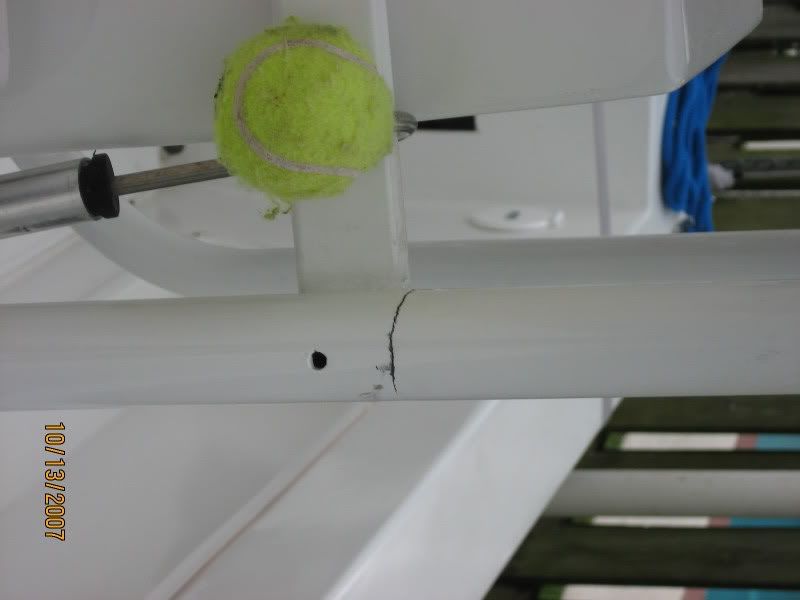 Well, I’m kind of embarrassed about this issue because I should have known better. Anyway when installing a hardtop, keep in mind that your t-top may not have been designed to handle the pendulum effect or momentum the extra weight of a hard top will bring, specially if it does not have proper cross bracing. Check out the clear-cut breaks to both sides of my t-top at the point of connection. I’m very lucky the whole thing didn’t end up in the water. [IMG] http://i138.photobucket.com/albums/q...L/IMG_0218.jpg [/IMG] [IMG] http://i138.photobucket.com/albums/q...L/IMG_0217.jpg [/IMG]   |