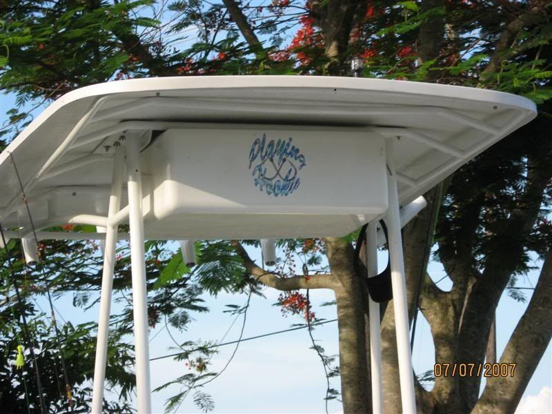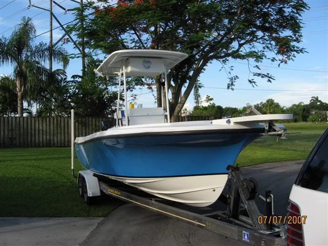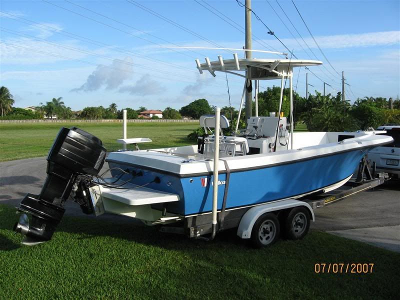 Holy Tolito :o :o That is the best looking V I've seen... congratulations! Love the powder coated T-top, hull color and everything! Man I would be afraid to scrach it and put fish blood on it! Great job.