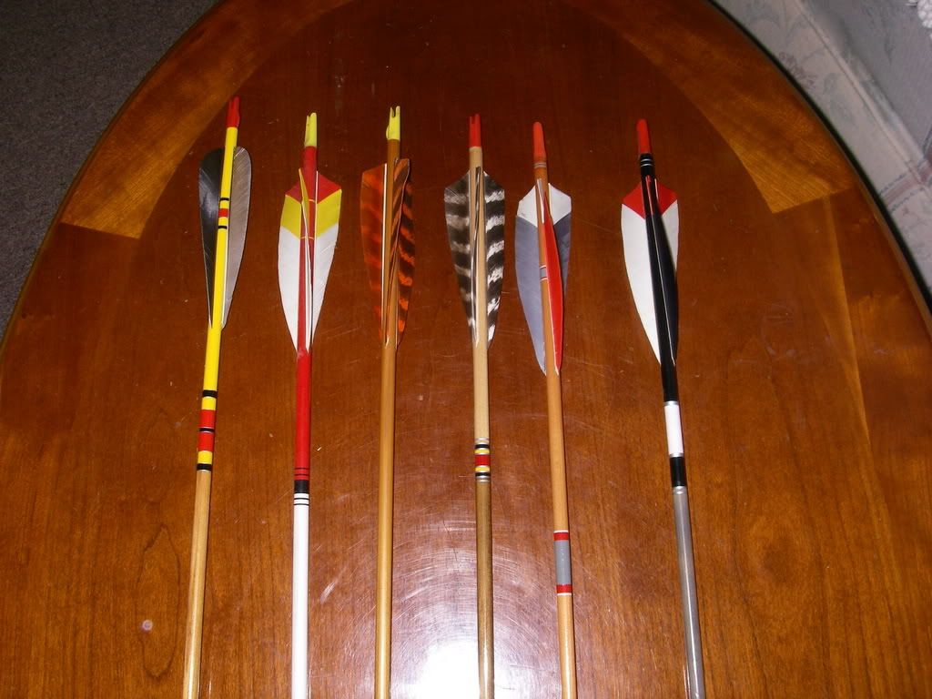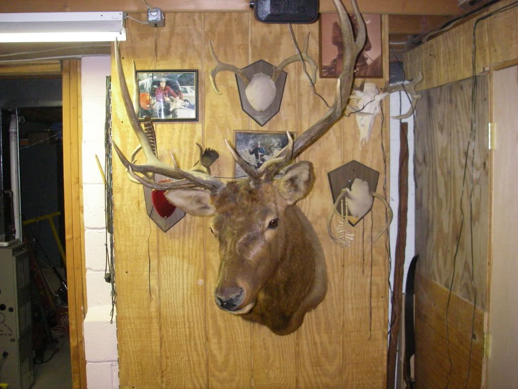 Anywho, thought you two guys and others would appreciate these since some hunting etc. photos were coming up. Charles Russell Wilderness area Montana. 6x6 Elk, still hunting with my bamboo and yew Renaissance Longbow ![]() A spiffy wool clad woodsman, still hunted buck shot at eight yards with my good friend/bowyer Chuck Jones Osage Royale ![]() The Elk on the wall in my dungeon with a few others that met their fate to the wooden shaft ![]() One of the walls of fame, actually The wall of fame for me ![]() The belly side of the Renaissance Longbow made exclusively for my shoppe by my friend/bowyer Rick Ingrahm ![]() These three bows have dealt silent death for over thirty deer between them, left to right The Monarch the Renaissance LongBow The Osage Royale ![]() Another silent killer the Doug Knight Yew recurve ![]() Some of my arrow work ![]() The war room ![]() My other passion, black powder. This is a copy of a firearm that was common in the late 1700's it is a smooth bore .62 cal. (20ga) shoots round lead ball or shot and does both very well. The all around survival weapon. Will take the largest game or small game and fowl. This baby I built and it has taken many of all three ![]() ![]() ![]() This sweet baby is a copy of a Tennesee Mountain Rifle circa early to mid 1800's and I made her also. She is 50.cal which is bigger than most of the originals. She shoots to 125 yards real sweet with open iron sites and my old eyes ![]() All iron furniture on her as per tradition, my shooting pouch and scrimshawed horn ![]()