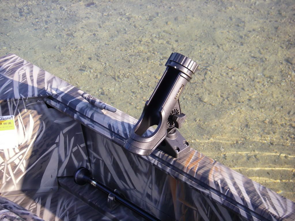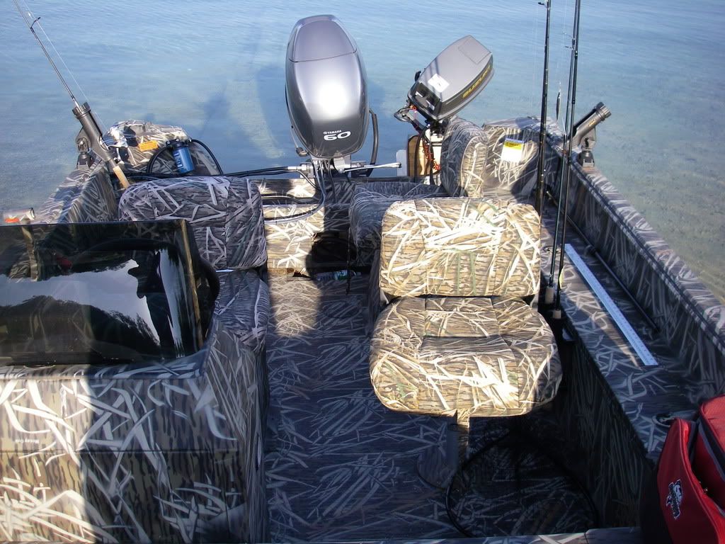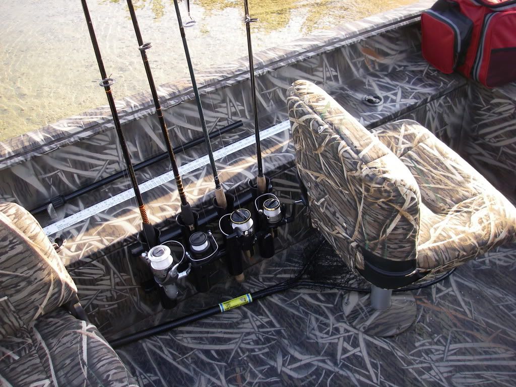 Added some Cabelas rod holders, four in fact. I had these before, they are tough and strong. Best of all they adjust to any angle you want. I thru bolted the bases and the holders are removable. ![]() My Garmin GPS/Sonar 398 color. From here I can rotate it and see it from the front pedestal when trolling motor is deployed ![]() Added an additional pedestal seat port side of helm area, easily removable when not needed and heavy duty, also added a four pack rod holder just behind it ![]() Also have the venerable 9.9 Suzuki on and running sweet and another view of the new seat. ![]() Large live well full of Herring for the hungry trout ![]() The GSpot ready for war or a little fishing on Round Vally Reservoir ![]() ![]() ![]() Added my stick on fish measure tape and I am literally done. First time I have ever been able to say that. The only option I may add is a set of down riggers next year when I have some money to play with. Can get by without them and have done so for years. Well thats her, no V but she has been a good one, I will have her till I am dust to dust so to speak ;)