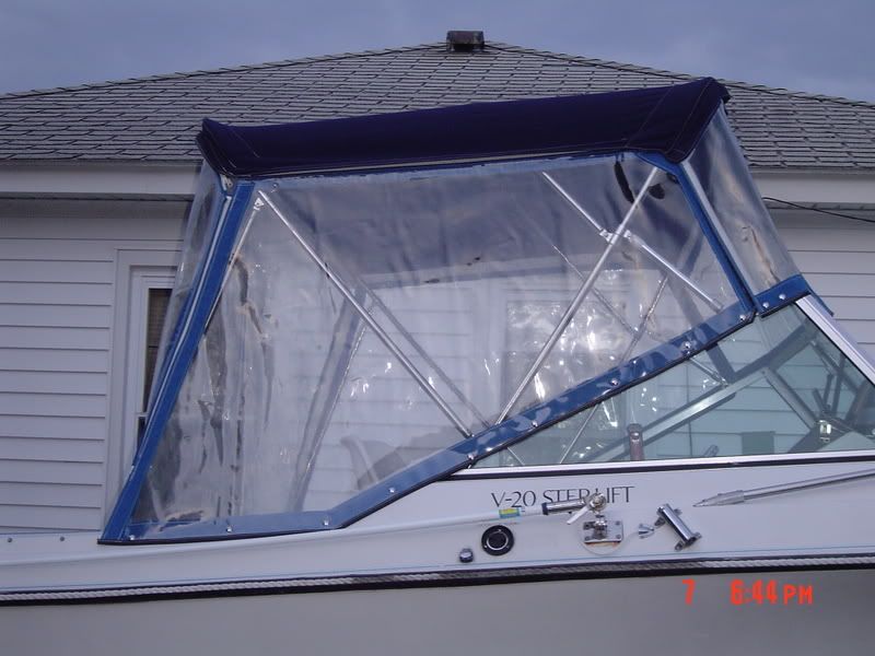 Notice the curtains dont match the roof color. No big deal to me. Also impressed how with the enclosure on, it muffles the sound of the engine when inside the enclosure. No more yelling. ;D